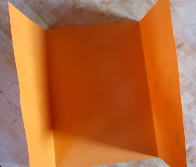 The very first step is to fold your lapbook: Fold both sides towards the center (as you see on the photo) to create the basic lapbook shape that can be opened and closed.